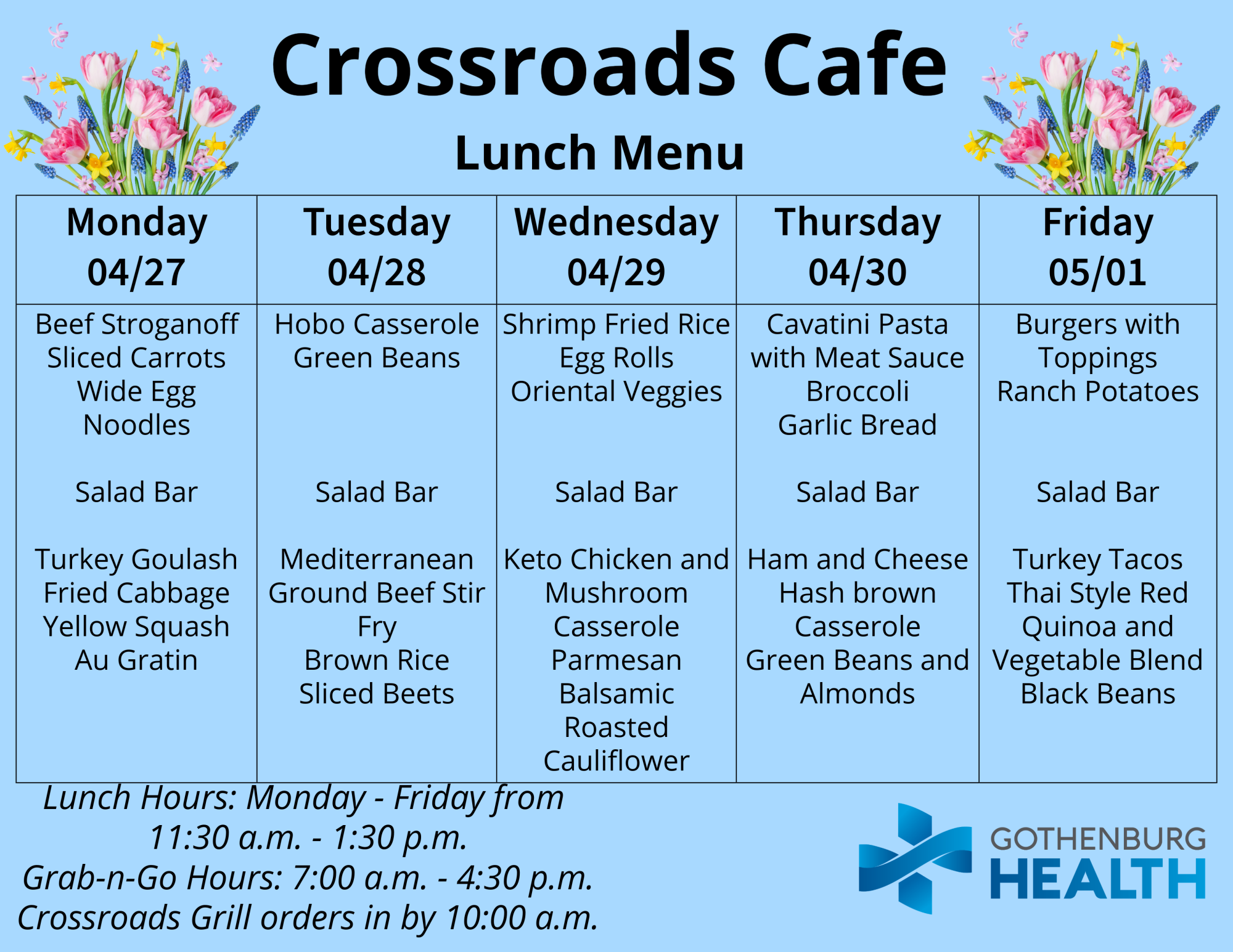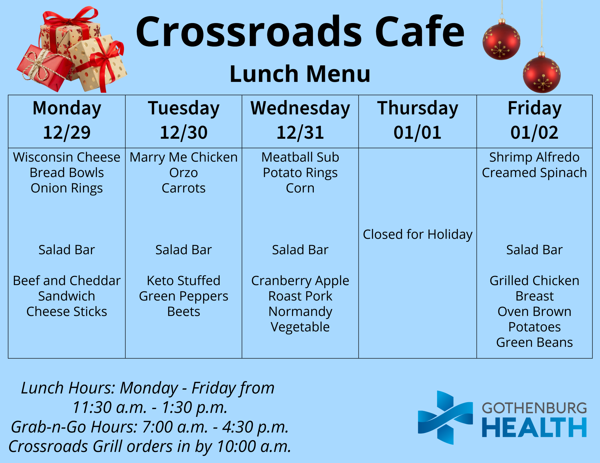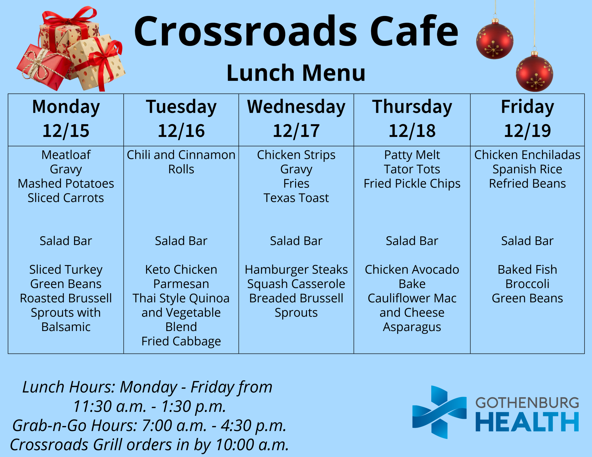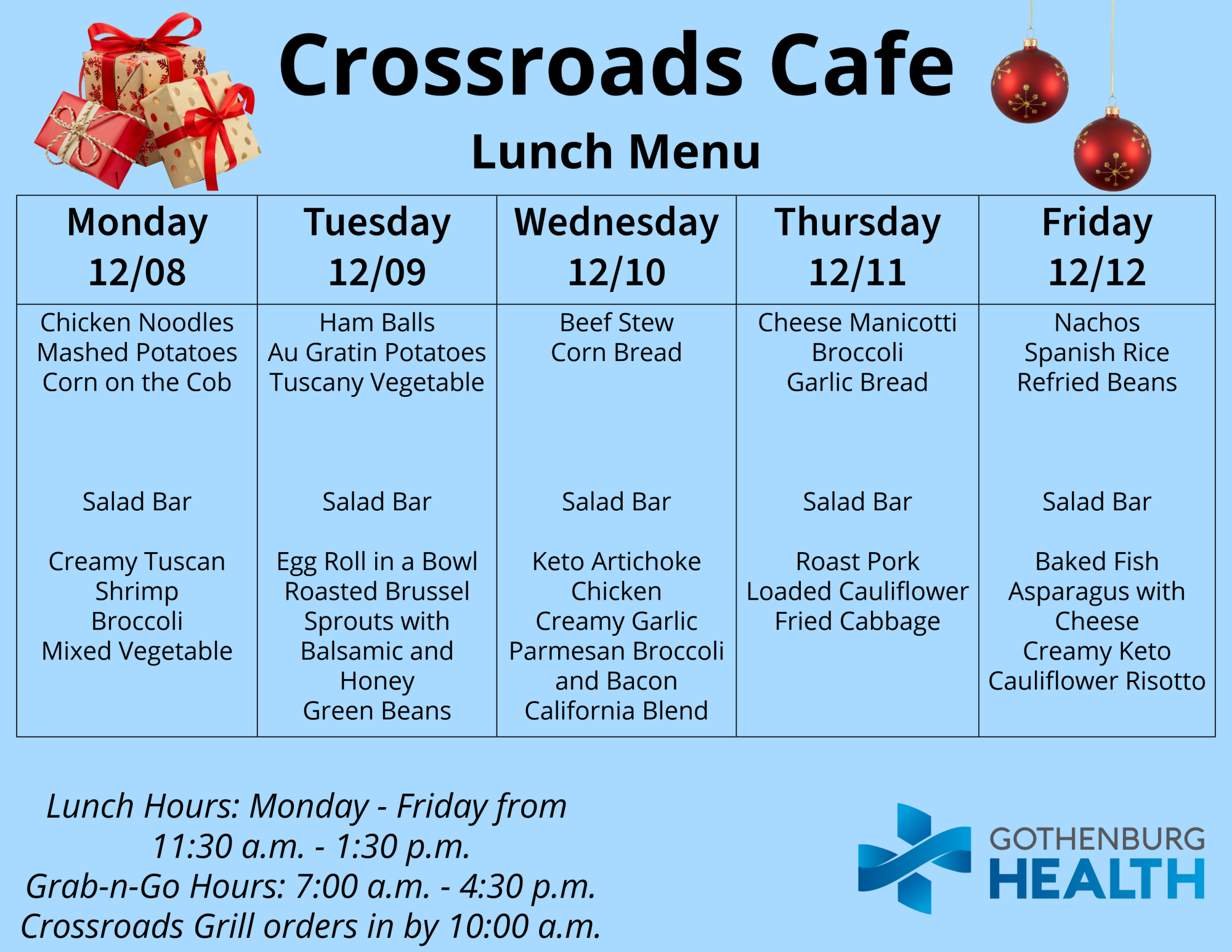 Also, you can find the weekly menu on our Facebook page, which is published every Monday: https://www.facebook.com/GburgHealth/.